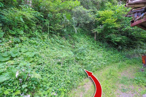 G地点は土手の中腹にあるとのことなので、竹を伝いながら降下していく。