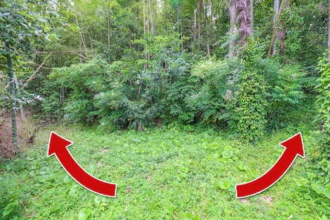 過密な木の目隠しにより、もはやどこが念仏洞の場所だかも分からないほどだ。