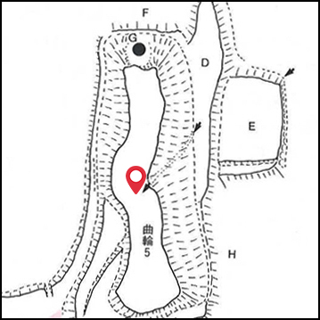 念仏洞のある土手下にはDと曲輪4を結ぶ連絡路が横切り、その先は再び土手となっている。