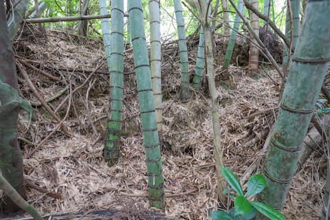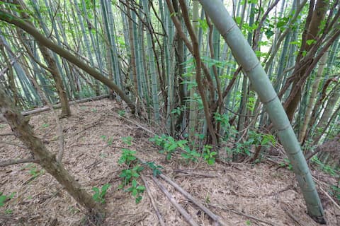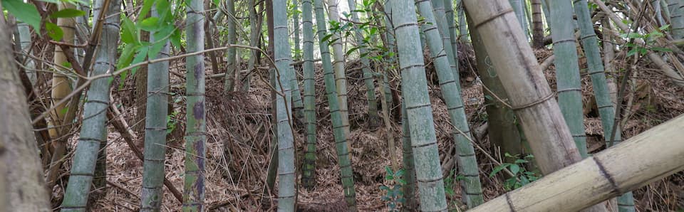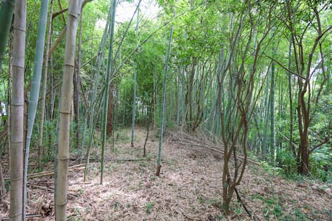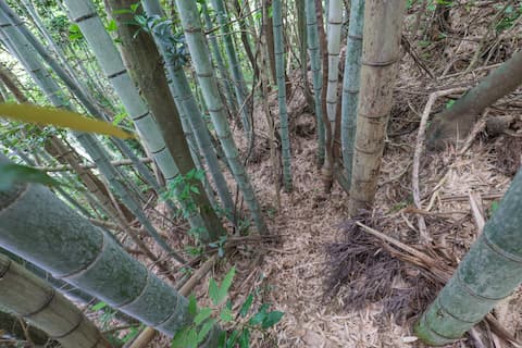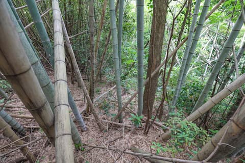 周りを取り囲むようにして竹林が繁茂。それゆえ高台にありながら外の景色は全く見えない。