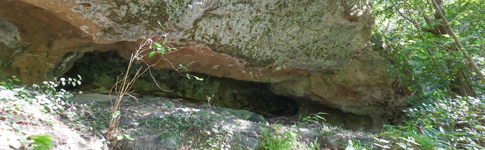 2回目は前回の反省から徒歩にて登山。標柱の位置とそれまでの道のりは把握していたので、標柱までは難なく到着。ところがその先の道が分からず1時間ほど彷徨うことに。矢印看板を見つけた時は山の中で一人歓喜の声を上げるほどだった(この時は洞窟まで辿りついたが撮影のみで撤退した)。