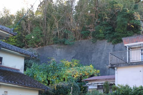 擁壁が断崖絶壁となっていることから、擁壁前に建っている住宅地はかつて水天山の裾野であったことは明らかで、県道37号線を中心とする道路の発展に伴い、住宅が次々に立ち並び、水天山も切り開かれて現在のような姿となったことが分かる。