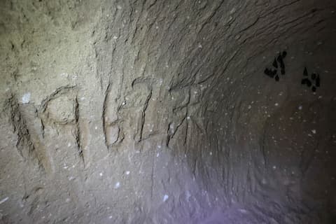 先の落書きと比べると、線の幅と深さが異なることから、こちらは灯明跡か。