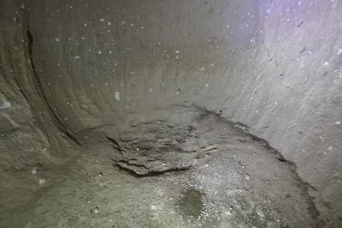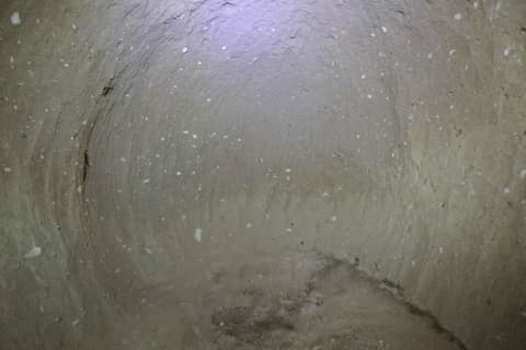 内部が入口よりも低い位置にあり、地上は見えない。