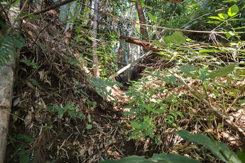 よくよく観察すると、そこには道らしき跡も残っていることから、ここはいざという時に森に逃げ込むための避難経路だったのだろう。