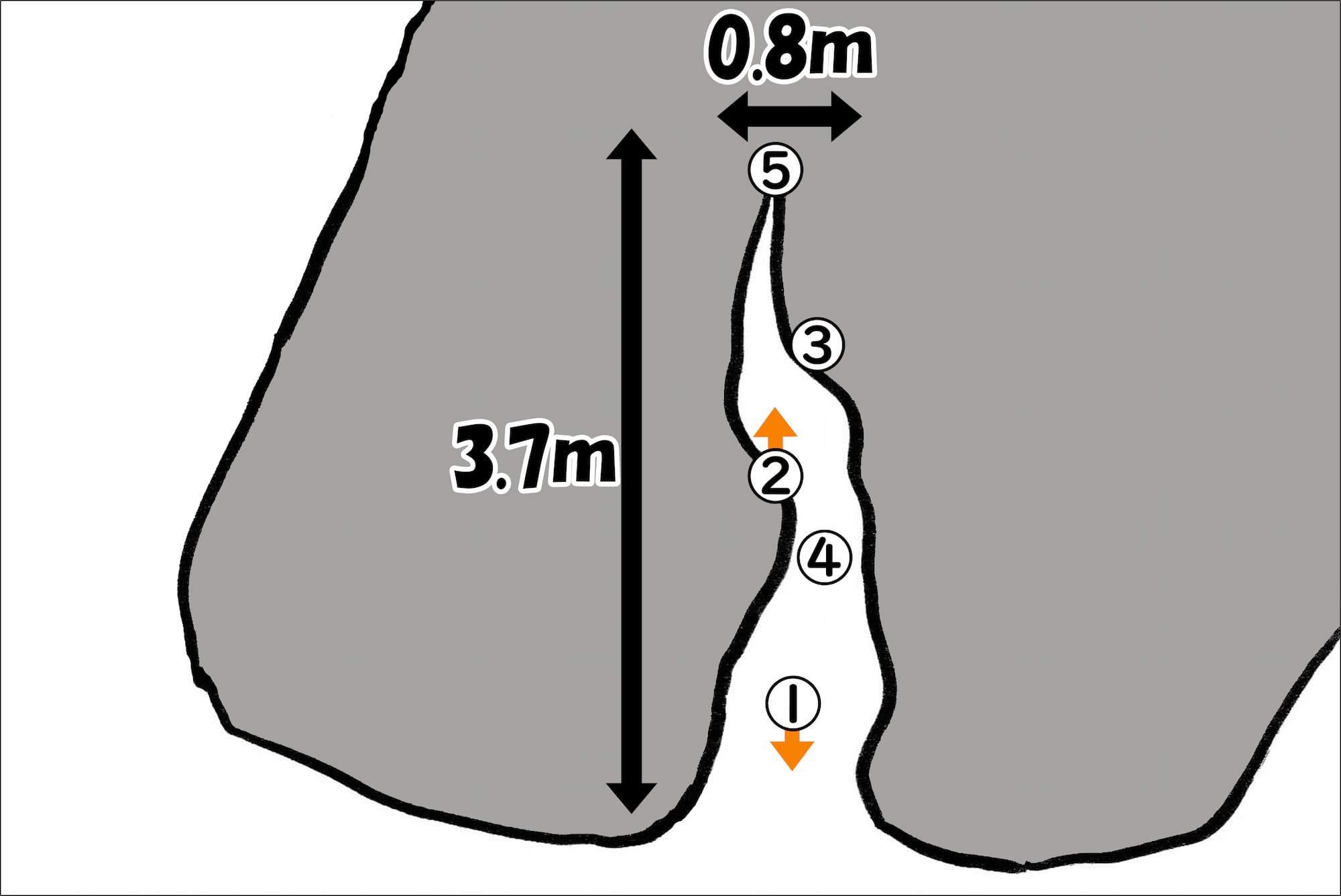 ▲洞窟内を上から見た図(番号は撮影位置、矢印はカメラの向き)
