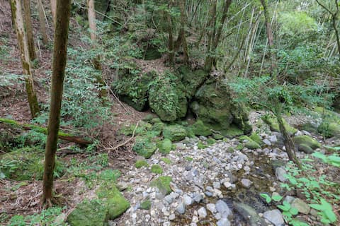洞窟は深い山間の渓谷にある。