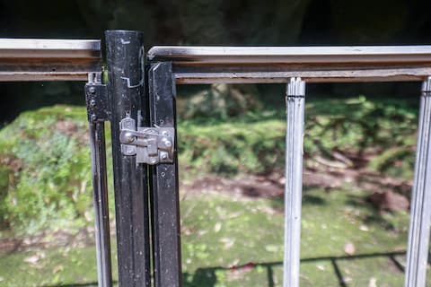入口前方に柵が設けられているが、ここは無施錠。