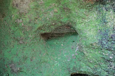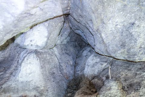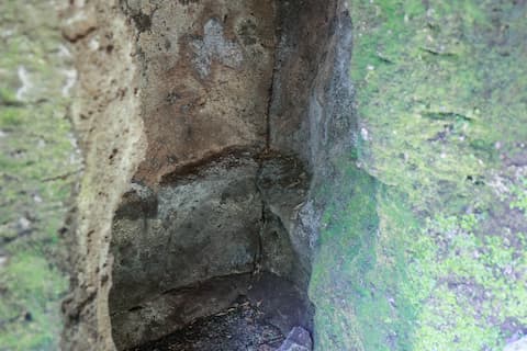 ・岩壁の一部に人の手による加工の跡あり。