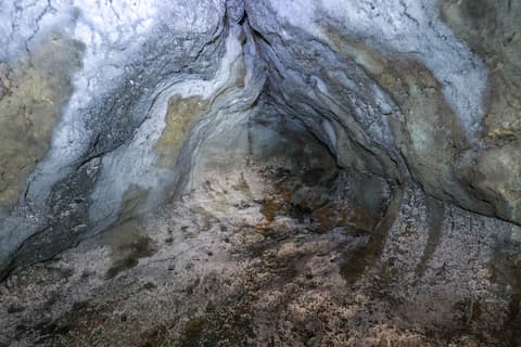 地面は外との境界がなく、入口も広いため、内部からも(外部からも)向こう側がしっかりと見える構造。当然ながら外からの光量も多く、洞窟の中は非常に明るい。