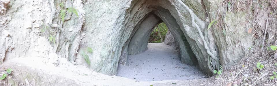 高さ4.6mの崖の下に掘られており、向こう側が見える「トンネル型」の洞窟である。