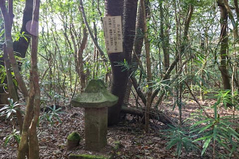石祠があるのは虚空蔵岳(標高311m)の麓の森の中。