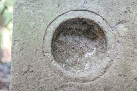 石祠によっては前後を2枚の石で挟んだ形のタイプ(その場合は中に彫り物が施されており、正面の窓から覗けるようになっている)もあるが、今回のものは1枚だけのシンプルなタイプ。