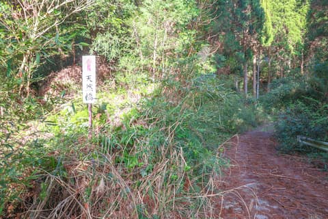 沿道にある「天然橋」と書かれた標柱を目印に左の小道へと入る。