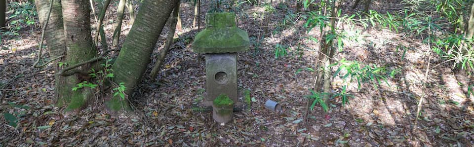「がま」は念仏洞を意味する鹿児島の方言なので問題ないにしても、次の「白砂に埋まって居た」は引っかかる。もし言葉通りならば、念仏洞はこの場所ではないことになる。なぜなら石祠周辺の地面は白砂ではなく土だからである。