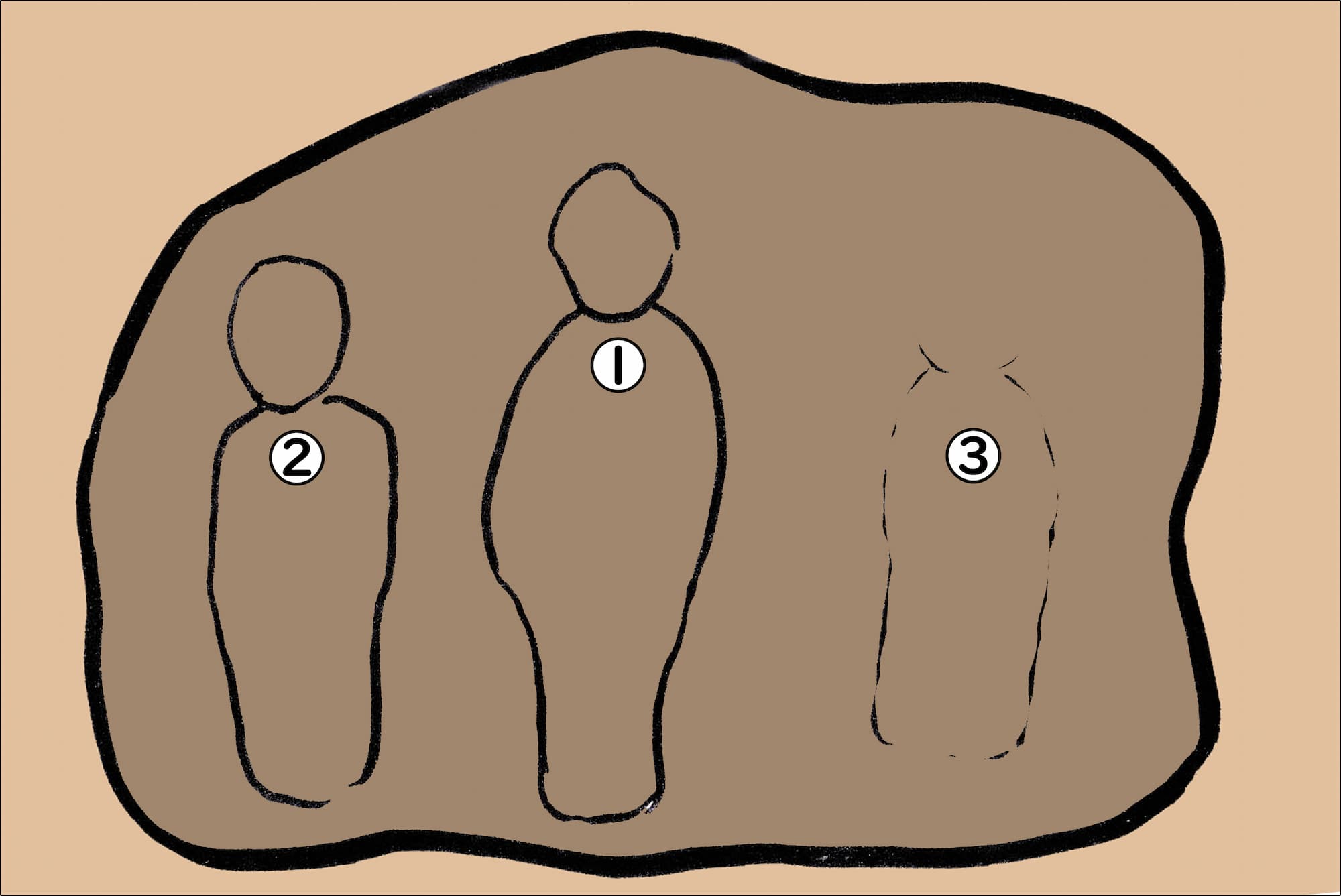 ▲岩を正面から見た図(番号は撮影位置)