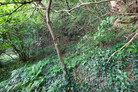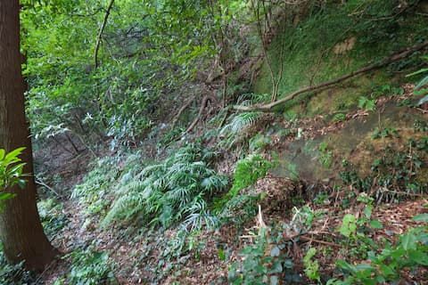 一応、中を確認したが奥行きのほとんどない小穴(人が一人入れる程度)であることから、これらはおそらく防空壕、もしくは貯蔵・保管庫だと考えられる。少なくとも「かくれ念仏洞」ではないことは明らかである。