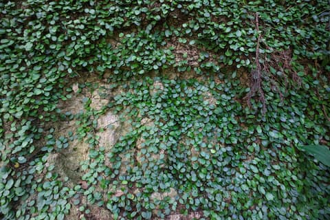 目の前にあったのは全体がツタに覆われた巨岩。