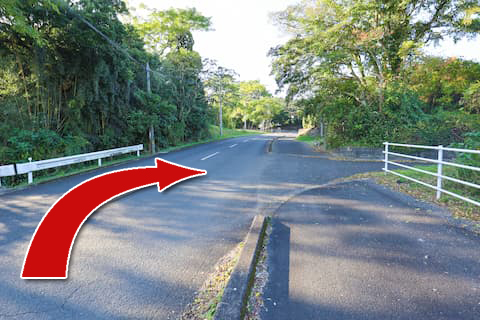 JR指宿枕崎線の踏切を渡ってすぐの右の脇道に入る。
