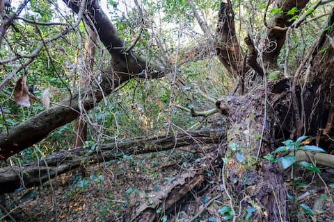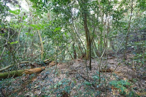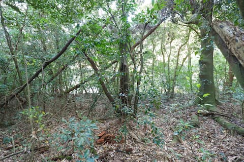 倒木、ツタ、棘のある木…、おまけに地面は至る所に起伏があるため(しかもそれが草で覆われて分かりにくくなっている)、前方と足元、両方に注意が必要。