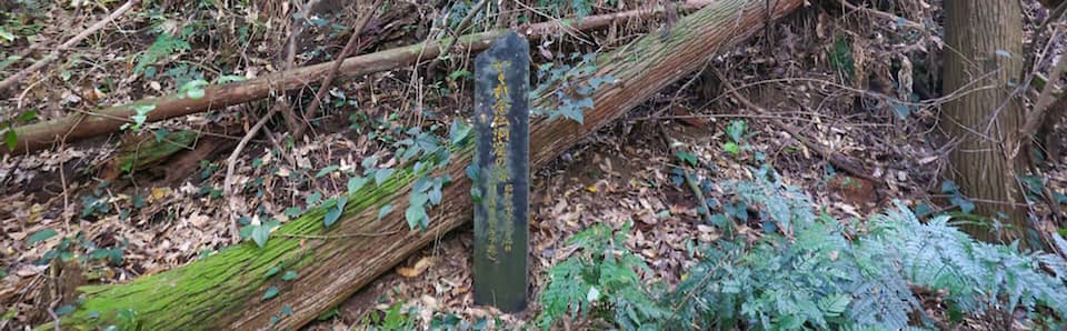 草木と格闘しながらしばらく歩くと、左手の土手下に目当ての石碑を発見。