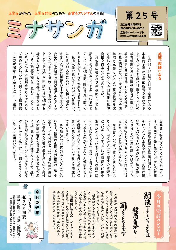 「ミナサンガ」第25号(2026年4月号)ができました。