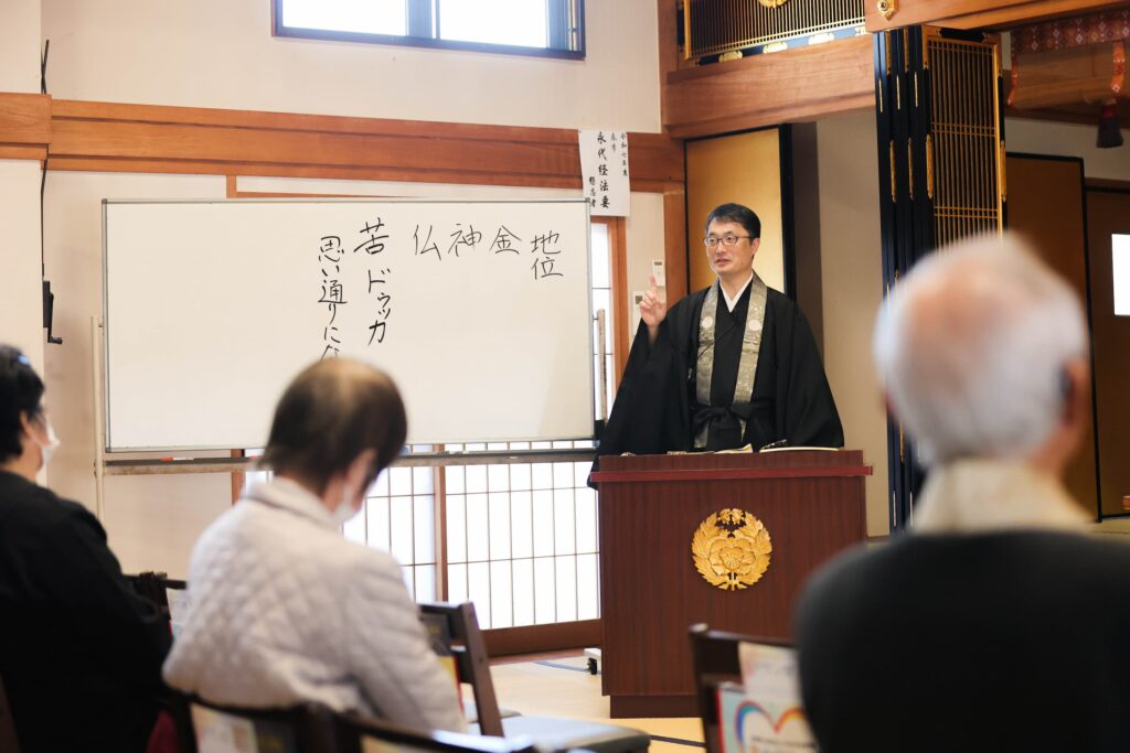 親鸞聖人のお言葉をもとに、様々な例話を引き合いに出し、易しくも深い語り口で、私共の御信心を深めさせていただきました。
