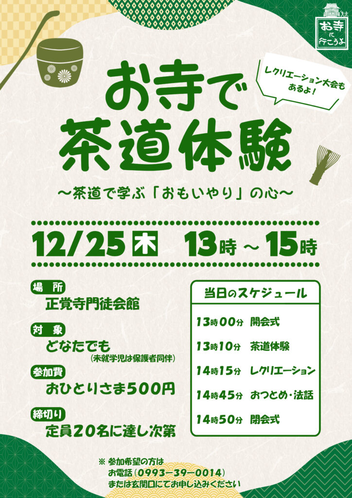 お申し込み・お問い合わせは直接お寺へおいでになるか、お電話(0993-39-0014)にてお願いいたします。